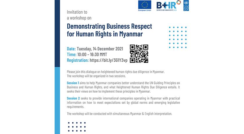 CCI France Myanmar invites you to a workshop on ‘Demonstrating Business Respect for Human Rights in Myanmar’ by UNDP MYANMAR on 14 December 2021 from 10.00- 16.30 (Myanmar time) on Zoom.