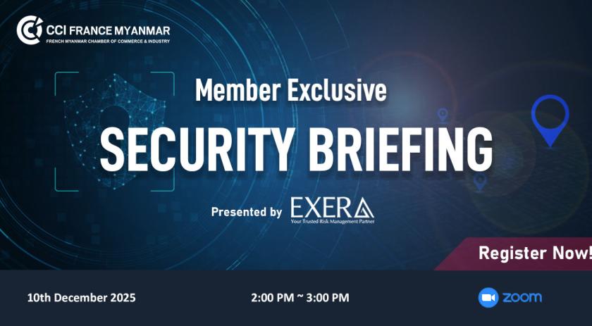 Join us for an exclusive members-only Security Briefing hosted by CCI France Myanmar in collaboration with EXERA. This session is quarterly designed to keep your business informed on the latest security general information and development progress in Myanmar.
