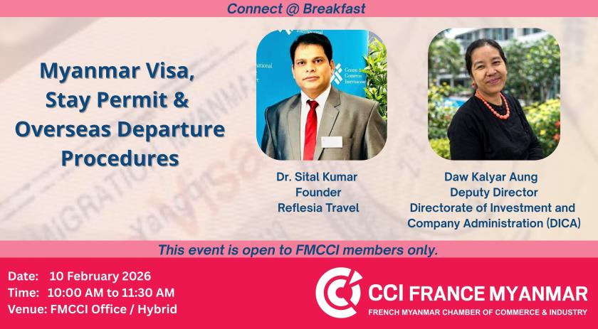 FMCCI is pleased to organize a Visa Knowledge Sharing Session for members, aimed at raising awareness of visa regulations and promoting legal and compliant entry and exit procedures in Myanmar.